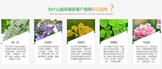 長沙東日園林工程有限公司是一家集園林綠化工程、假山、音樂噴泉、水景工程施工、高速公路邊坡防護和綠化工程、綠化養護管理、苗木花卉生產及草種、園藝資材銷售于一體的綜合性國家園林三級資質企業。咨詢熱線:0731-85316467